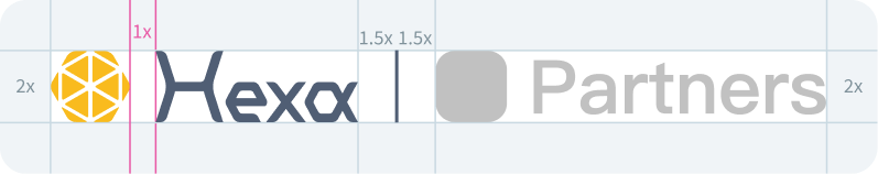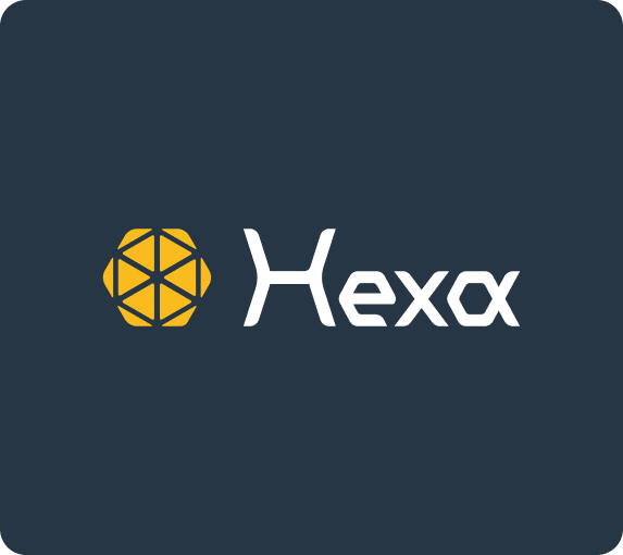 Hexa 的標誌由「字標(word mark)」以及「蜂巢狀的圖形標誌(graphics mark)」構成。